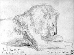 Inscr. b. g. : Jardin des Plantes / d’après nature. ; b. dr. : Brutus lion du Soudan