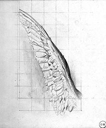 Mine de plomb sur papier beige. Mise au carreau à la mine de plomb
