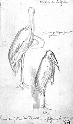 Inscr. h. dr. : marabou du Sénégal ; c. dr. : cou rouge brique jaunatre / passé ; b. g. : Serres du Jardin des Plantes –
