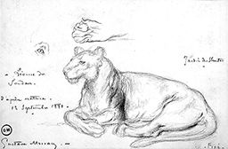 Inscr. c. g. : – Lionne du / Soudan. / d’après nature – ; c. dr. : Jardin des Plantes ; b. dr. : – Fixé –