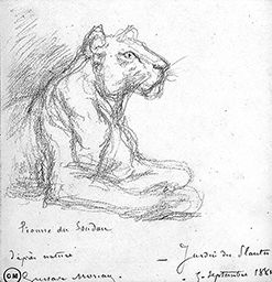 Inscr. b. g. : lionne du Soudan / d’après nature ; b. dr. : – Jardin des Plantes