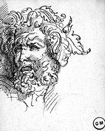 Mine de plomb, plume et encre brune