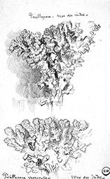 Inscr. h. c. : Pocillopora – mer des indes – ; b. g. : Pocillopora verrucosa – ; b. dr. : Mer des Indes –