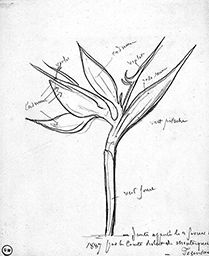 Inscr. c. : Cadmium / violet / cadmium / violet / rose jaune / vert pistache ; b. dr. : vert fonce / – plante apportée le 2 fevrier / 1887 par le Comte Robert de Montesquiou / – Fezensac