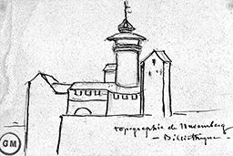 Copie d’après « Représentation du Château Imp. du côté du chemin qui y mène à Nuremberg », détail, Topographie de la Bavière Moyenne-Franconie Nuremberg, t. II, n. p.