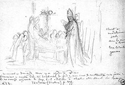 Inscr. c. dr. : Christ α / madeleine / seuls. / avec le vase / α [mot illisible] / Ecce Columba / gemens ; b. : monsieur ne demandez vous pas pardon à Dieu – / monsieur je supplie Dieu très humblement du fond de mon cœur de me remettre mes péchés α / de me recevoir au nombre de ceux qu’il a destinés à chanter éternellement ses louanges / α tt. Vie de Rancé (Chateau) p. 275.