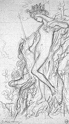 Mine de plomb sur papier beige. Mise au carreau partielle à la mine de plomb