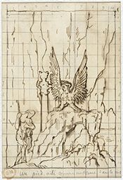 Inscr. b. à la mine de plomb : un pied ailé comme embleme dans le bas