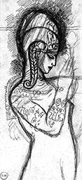Technique : Encre noire ; mine de plomb ; papier-calque ; plume