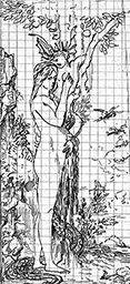 Plume et encre brune sur papier-calque contrecollé. Mise au carreau à la mine de plomb