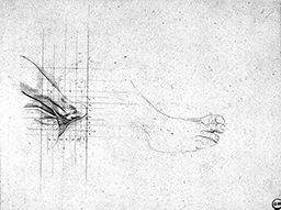 Mine de plomb. Mise au carreau partielle, numérotée à la mine de plomb