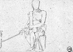 Technique : Mine de plomb ; papier gris-bleu ; papier gris