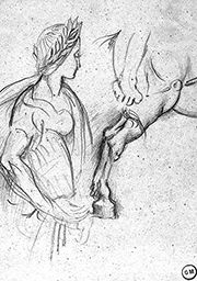 Sujets iconographiques : Cavaliers ; Cheval ; Figure féminine