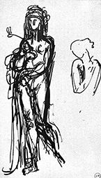 Technique : Encre noire ; papier beige ; plume
