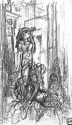 Technique : Mine de plomb ; papier bleu