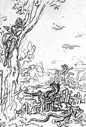 Etude en rapport avec Le Dragon à plusieurs têtes et le Dragon à plusieurs queues exposé à Paris en 1881 au Cercle des aquarellistes et en 1886 à la galerie Goupil (M n° 240)