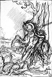 Etude en rapport avec Le Cheval s’étant voulu venger du cerf exposé à Paris en 1886 à la galerie Goupil (M n° 260)