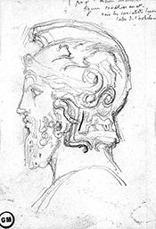 Inscr. h. dr. : pour l’Hercule [mot illisible] / figures cariatides en or – / voir les cariatides louvre / – salle de l’achile –
