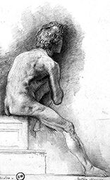 Sujets iconographiques : Moïse, en vue de la Terre promise, ôte ses sandales ; Modèle masculin