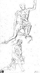 Etude de groupe en rapport avec Moïse, en vue de la Terre promise, ôte ses sandales (Cat. 21 ; Inv. 13985)