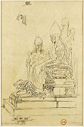 Ce dessin peut être rapproché de cette peinture (Cat. 611) grâce à la photographie (Inv. 16914-6), faite d’un état antérieur, où l’on voit Hérode, aujourd’hui effacé.