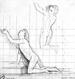Mine de plomb. Mise au carreau partielle numérotée à la mine de plomb