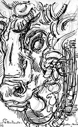 Technique : Encre noire ; fusain ; plume