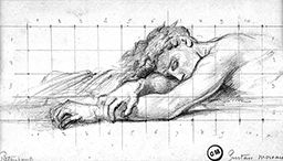 Mine de plomb. Mise au carreau numérotée à la mine de plomb