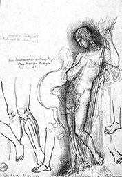 Inscr. h. g. à la mine de plomb au verso : Pasiphae. 1 volume / pour dedale de Marc Antoine ; c. g. à la mine de plomb : pour lajustement des vieillards. Suzanne / Voir mantegna triomphe. / Voir voir !!! ; b. dr. à la mine de plomb : Sphinx – – Œdipe –