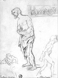 Etude de personnage, d’homme et d’adolescent en rapport avec Les Prétendants (Cat. 19). Etude de composition en rapport avec L’Enfant prodigue (M n° 322) ?