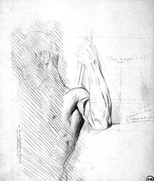 Inscr. h. dr. : de la / jointure du poignet à l’os du / coude ; c. dr. : os du coude / mesurant la longueur / de l’attache de la hanche / a l’attache du pectoral ; b. g. à la verticale : ne pas se rapporter à l’ensemble / qui n’est pas juste