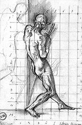 Mine de plomb. Mise au carreau numérotée à la mine de plomb