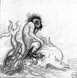 Etude en rapport avec Le Singe et le Dauphin exposé à Paris en 1881 au Cercle des aquarellistes et en 1886 à la galerie Goupil (M n° 248)