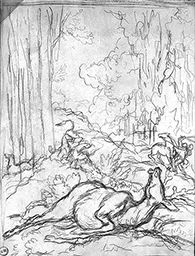 Etude en rapport avec Le Cheval s’étant voulu venger du cerf exposé à Paris en 1886 à la galerie Goupil (M n° 260)