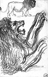 Etude de lion rugissant pour Le Lion et le Moucheron exposé à Paris en 1881 au Cercle des aquarellistes et en 1886 à la galerie Goupil (M n° 234)