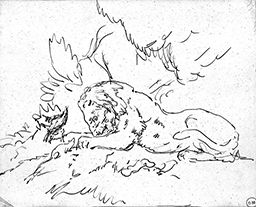 Etude en rapport avec Le Lion et le Rat exposé à Paris en 1886 à la galerie Goupil (M n° 261), pose du lion reprise dans Le Lion exposé à Paris en 1886 à la galerie Goupil (M n° 267)