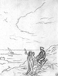 Etude en rapport avec L’Huître et les Plaideurs exposé à Paris en 1881 au Cercle des aquarellistes et en 1886 à la galerie Goupil (M n° 253)