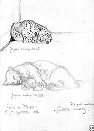 Inscr. h. g. : Jaguar amérique du Sud ; b. g. : Jaguar amérique du Sud / Jardin des Plantes ; b. dr. : d’après nature