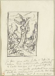 Inscr. b. à la mine de plomb : Je fais pour cette fable si difficile pour / mieux dire intraduisible – intitulée / ((Contre ceux qui ont le gout difficile) / jimagine un poète chantant avec une / foule de mirmidons imbéciles lui tirant / des fleches dont il se moque