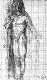 Mine de plomb sur papier quadrillé beige