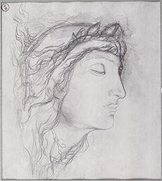 Ce dessin est inspiré de la tête de l’Esclave mourant de Michel-Ange, dont Gustave Moreau possédait une copie en plâtre (Inv. 16076).