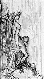 Plume et encre noire, mine de plomb sur papier quadrillé beige