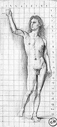 Mine de plomb. Mise au carreau numérotée à la mine de plomb