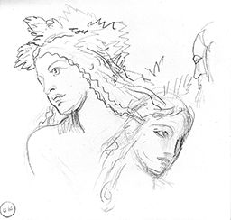 Etudes de tête de femme en rapport avec La Fée aux griffons (Cat. 183)