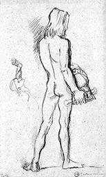 Etude de modèle masculin nu pour Mars en rapport avec Tyrtée chantant pendant le combat (Cat. 18)