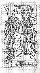 Plume et encre brune, mine de plomb. Mise au carreau numérotée à la mine de plomb