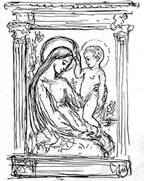 Sujets iconographiques : Jésus-Christ ; Enfant Jésus bénissant sa mère ; Vierge Marie