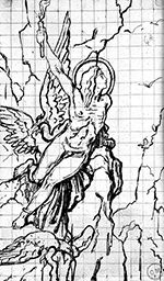 Plume et encre brune sur papier-calque contrecollé. Mise au carreau à la mine de plomb