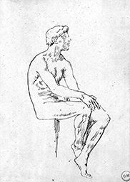 La photographie Modèle masculin nu assis (Inv. 16028 A) a servi de modèle à l’élaboration de cette figure.