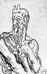 Ce dessin est une interprétation de la copie en plâtre du Moïse de Michel-Ange que Moreau conservait dans sa collection (Inv. 16193).